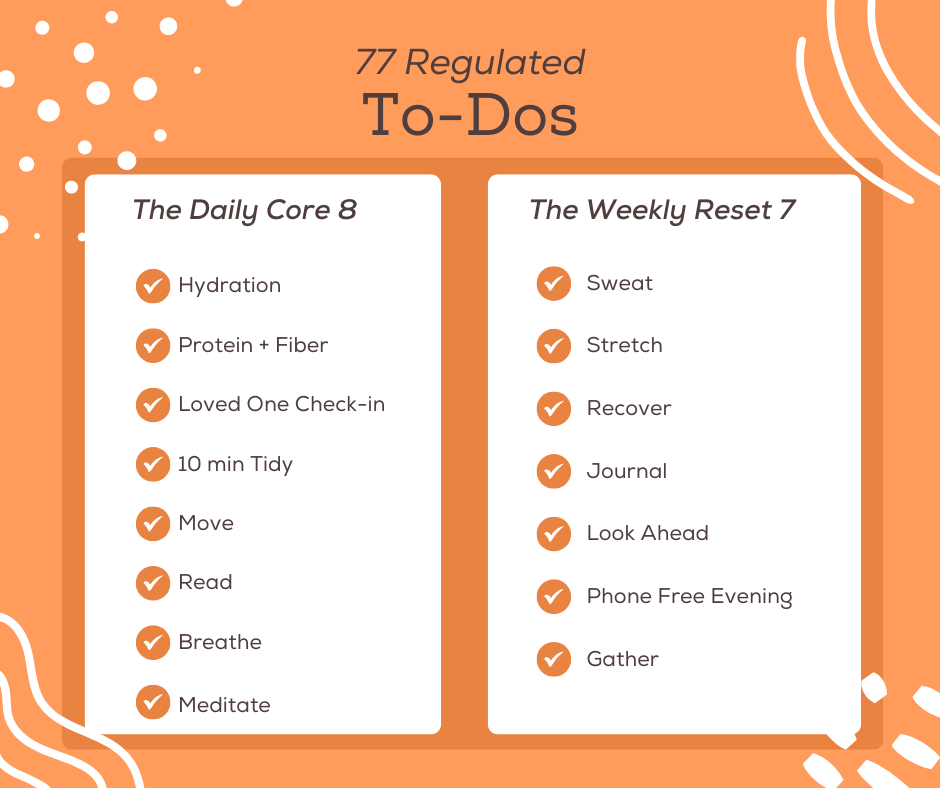 Are you joining in the 77 Regulated Challenge next week? Are you wondering, what IS the 77 Regulated Challenge? It’s like the famous 75 Hard, except I just can’t with hard right now, so instead, I invented a similar challenge, but one that is do-able, for overstimulated, dysregulated nervous systems, for the next 11 weeks to help us roll into the New Year our strongest, steadiest, most regulated selves.